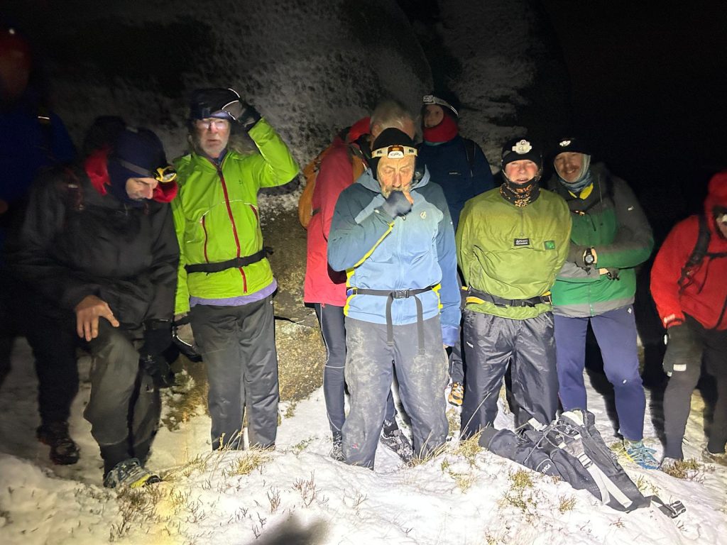 But, we paid for our decision by fighting against the now more forceful wind whilst balancing in the deep and snowy narrow trodden path. Thankfully our round brought us into a favourable wind direction but still with the balance challenges. We crowded into the wind free nooks and crannies in Bob’s Rock before our descent, eventually, to Dean Hill. Andy’s shout was to stay high which we did despite our tendency to drift down and spread out across the hillside. I think it did pay-off because eventually Dean Hill top was reached. Please note it is not by any means a significant looking top from above, unlike its almost apparent Alpine profile from the valley.