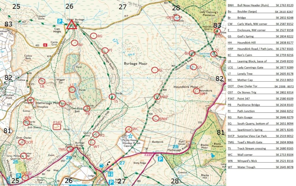 75 minute score event, from Upper Burbage Bridge carpark. SK 2604 8299. After 75 minutes, you lose 1 control every 2 minutes or part thereof.